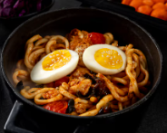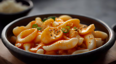 이렇게 완성된 떡볶이는 중독성 있는 매운맛을 자랑합니다. 떡과 어묵의 조합이 밸런스를 잡아주어 더욱 맛있습니다.
