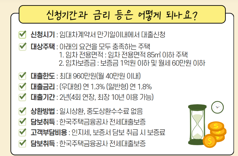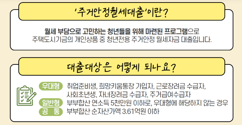 주택임대차계약을 체결해야 하고 임차보증금의 5% 이상을 자신의 통장에서 지불해야 하며 성년이고 무주택 세대주 여야 합니다. 정부에서 시행하는 다른 지원을 받고 있거나 배우자가 학자금 관련 지원금을 사용중이면 안될수 있습니다.