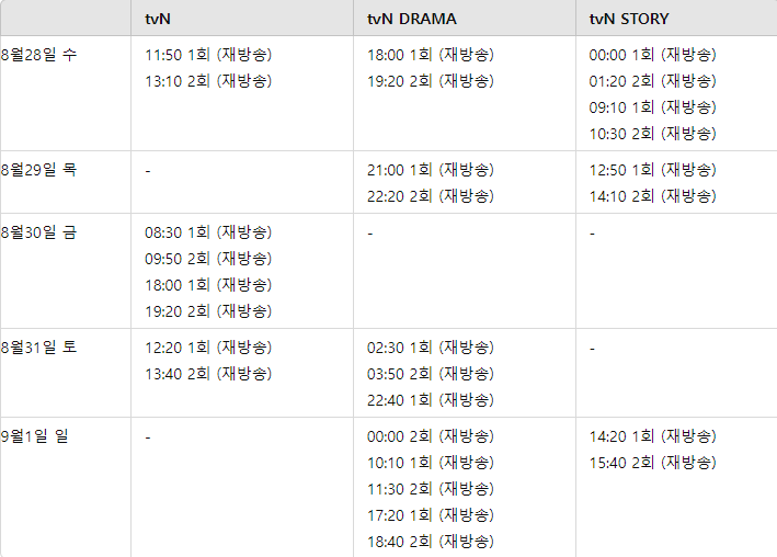 티비에서도 재방송을 볼수 있구요 티빙에서도 바로 시청이 가능합니다. 티빙은 네이버 플러스 멤버쉽 사용자는 무료로 볼수가 있습니다.