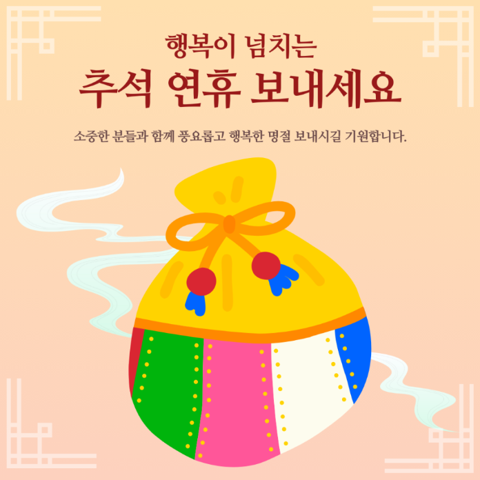 - "추석 연휴 동안 마음도 몸도 푹 쉬시어 건강하고 활력 넘치는 가을을 맞이하시길 바랍니다!"