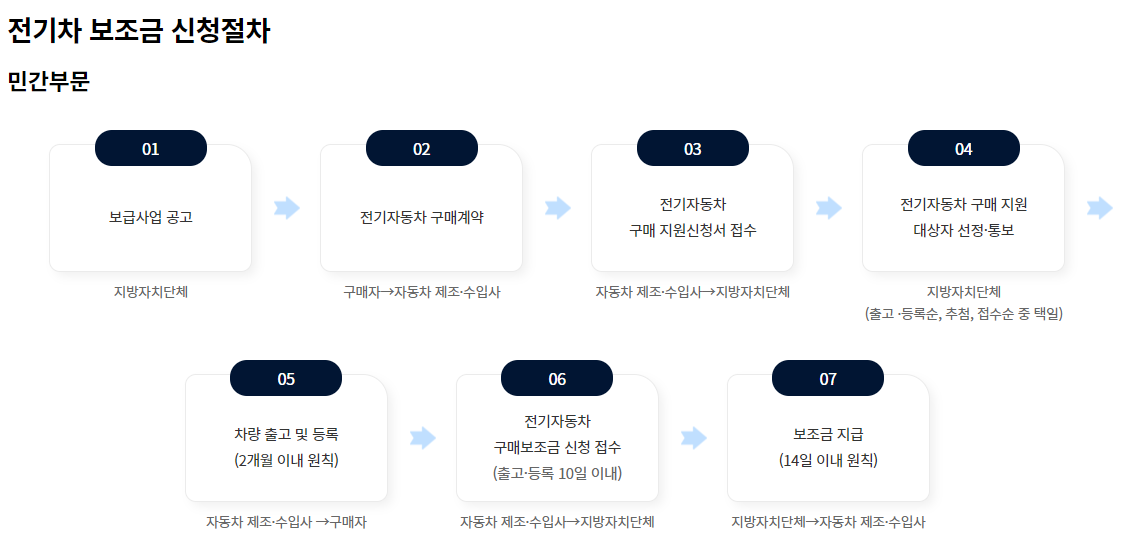 그 다음에 차량 출고 및 등록일 10일 전에 구매 보조금 신청 접수를 해야 합니다. 접수가 완료되면 14일 이내에 전기차 보조금이 지금되게 됩니다.