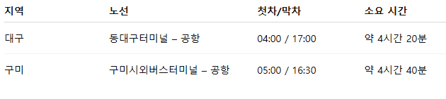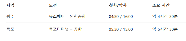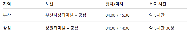 🗺️ 2. 지역별 공항버스 시간표 및 노선도