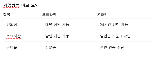 가입방법 비교 요약