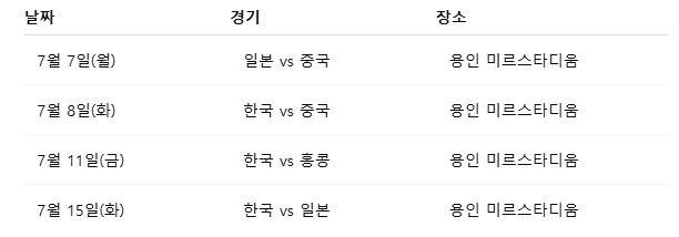 2. 동아시안컵 일정 및 주요 경기