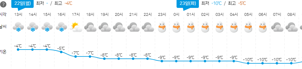 울릉도와 독도도 동해상의 해기차와 기압골의 영향으로 수요일 아침까지 많은 눈이 내릴 전망이라고 해요. 날씨가 엄청 많이 낮아져서 비나 눈이 내리면 빙판길이 될수도 있으니 주의가 필요합니다.