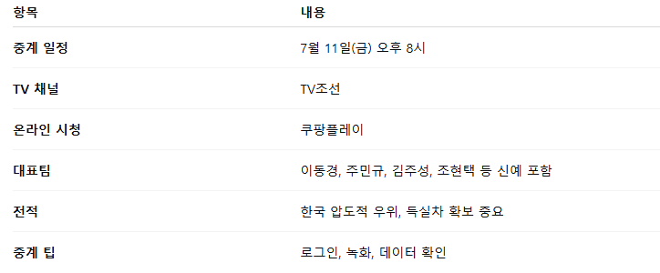 - 경기 일정: 2025년 7월 11일(금) 오후 8시