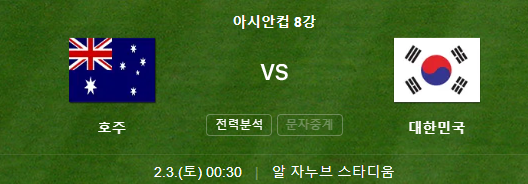 8강전의 호주는 대한민국 팀보다 이틀이나 더 휴식을 취했다는 이점이 있어요. 그래서 더 걱정이 되는 점인데요 조별리그 2위로 올라가는 바람에 휴식시간이 줄었습니다. 게다가 승부차기까지 가는 경기로 인해 피로가 엄청난 것이라는 추측을 하고 있습니다.