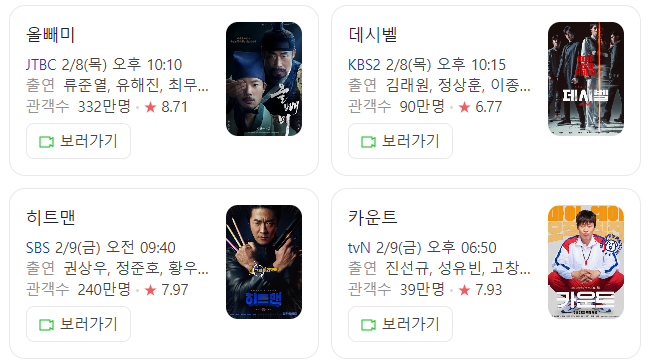 2월8일부터 금요일까지는 어떤 영화를 볼수 있는지 알아보겠는데요