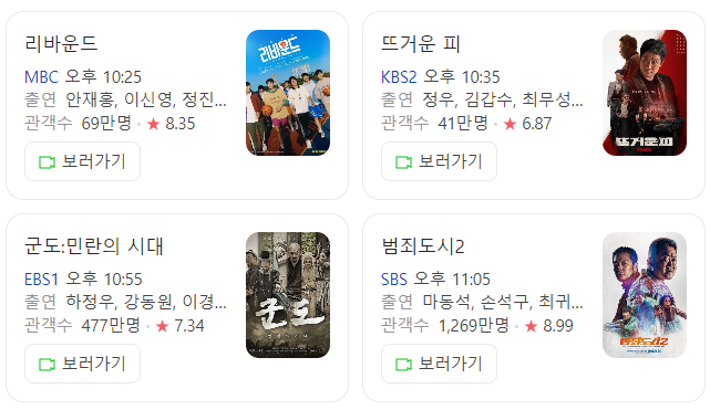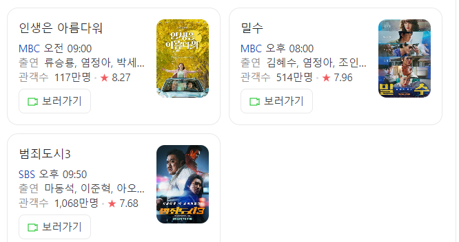살펴보니 제가 보고 싶었던 영화가 포함이 되어 있어서 시간이 되면 꼭 봐야지 싶은데요 저는 사실 범죄도시를 보지못했거든요. 결제를 해서 볼까도 생각했는데 설연휴 특선영화 편성표에 들어 있어서 너무 반가운것 같아요. 아이들 재우고 밤에 봐야겠습니다.