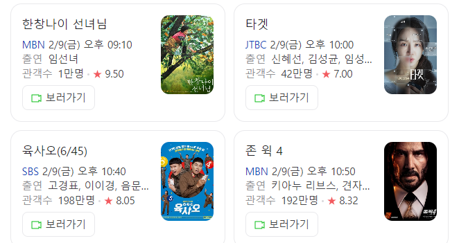 2월12일 월요일 설연휴 특선영화 편성표 참고하세요
