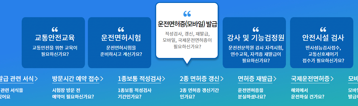 운전면허증 모바일 발금으로 들어가주세요 그리고 1종이나 2종 면허증 갱신을 클릭해 주세요