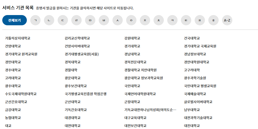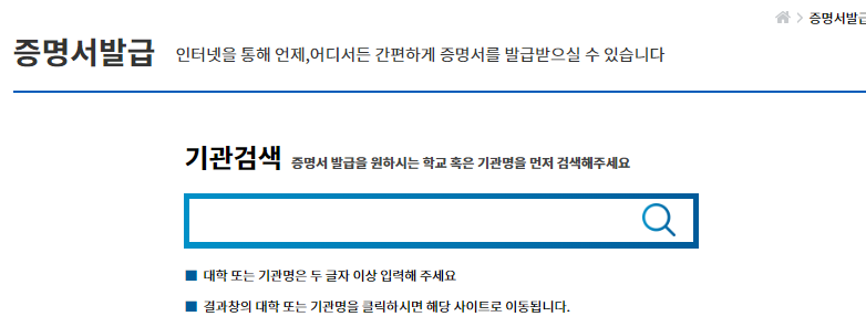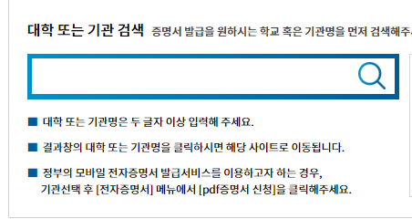 이번에 처음 사용을 해본 곳엔데 웹민원센터라는 곳입니다. 사설업체가 운영하는것 같은데요 학교를 입력하고 클릭을 하면 제 정보를 가지고 가서 바로 졸업증명서를 인쇄가 가능합니다.