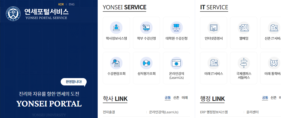 로그인이 되면 본인의 대학교를 선택을 하면 되는데요 거의 대부분의 학교는 검색이 되는걸로 보이는데요 나오지 않다면 서비스를 맺지 않은것으로 보면 되겠어요. 예로 연세대를 쳐보았는데요 밑에 뜨죠?? 요기를 클릭하면 학교로 넘어가서 서비스 이용이 가능합니다.