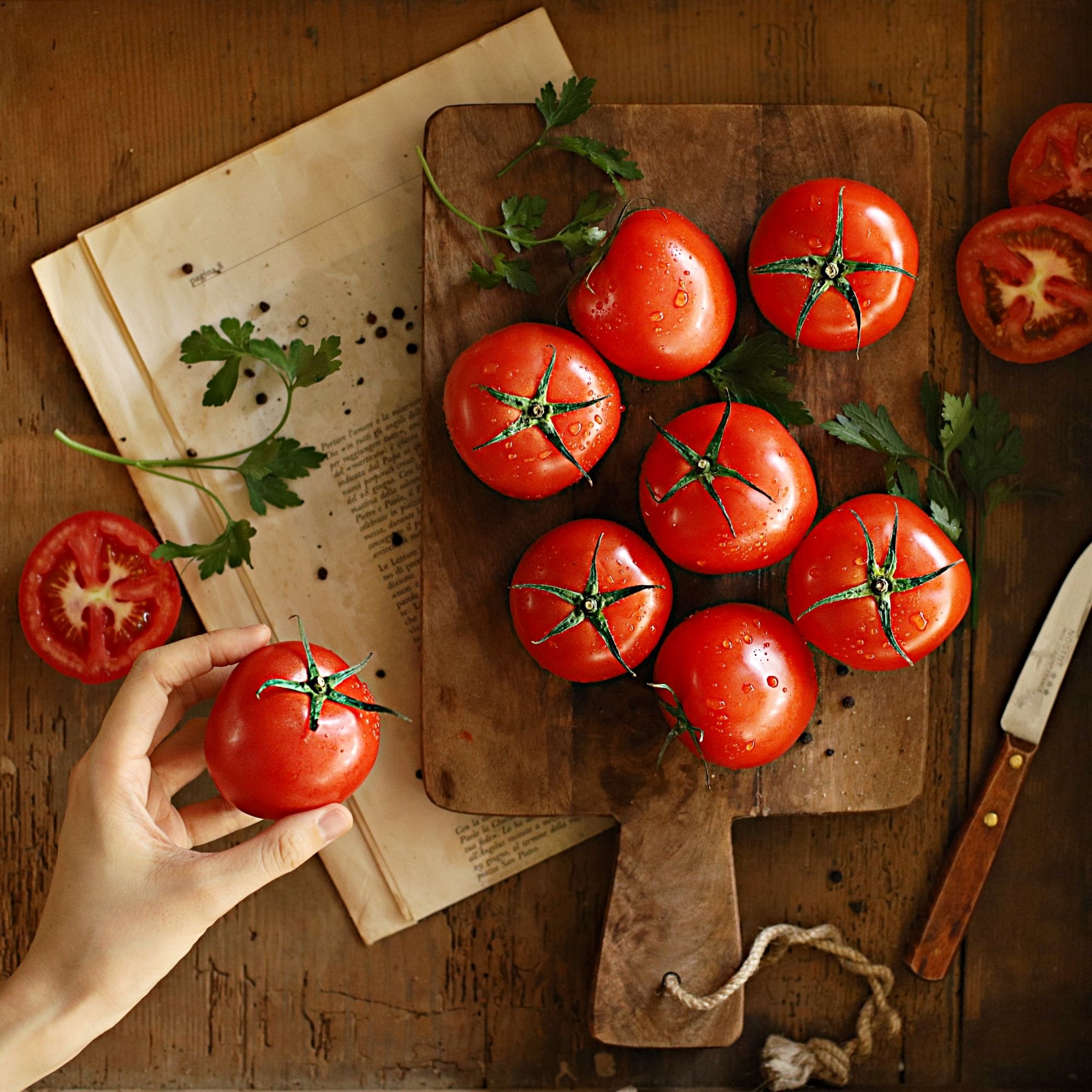 신선한 향긋함이 도는 토마토는 다양한 영양소가 풍부합니다. 비타민 C와 카로티노이드 등이 풍부하여 건강에 좋습니다.